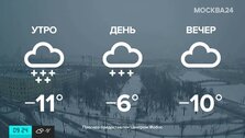 В воскресенье в столице ожидается небольшое потепление. Утром температура воздуха будет около 9 градусов мороза, а днем потеплеет до минус 5 градусов.