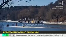 ОбществоЭкстремалы на сапах вышли на дрейфующую льдину в Серебряном бору