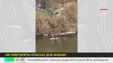 На Москве-реке в районе Мякининской поймы заметили любителей экстрима. Два человека отправились в путешествие на льдине. Вместо весел они взяли палки.