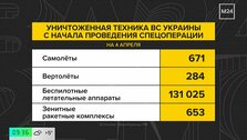 Всего с начала СВО ВС РФ уничтожили 671 самолет противника, 284 вертолета, более 130 тысяч беспилотников, свыше 600 зенитных ракетных комплексов и более 58 тысяч специальных военных машин.