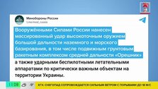 Россия нанесла массированный удар по критически важным объектам Украины, в том числе для атаки использовался комплекс "Орешник", сообщили в Минобороны.