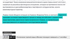 Киев фактически приостановил переговорный процесс между российскими и украинскими представителями. Об этом заявил Владимир Путин в телефонном разговоре с президентом Финляндии Саули Ниинисте.