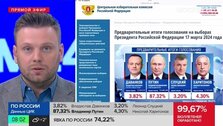 Как отметили в ЦИК РФ, явка на президентские выборы в России в этот раз стала рекордной, она превысила 74%. Отмечается, что на выборах в 2018 году явка составила 67,5%.