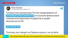 Она напомнила, что генпрокуратура предупредила об уголовной ответсвенности за оказание финансовой помощи иностранному государству в ущерб безопасности России.