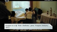 На предпремьерном показе - историческая встреча: первый космонавт в безвоздушном пространстве Алексей Леонов благодарит "замечательных землян" - "дорогого Тома и Олю".