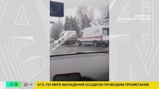 ДТП произошло на трассе М-7 "Волга". В районе Реутова скорая помощь столкнулась с легковым автомобилем, после чего отлетела в отбойник и опрокинулась набок.