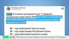 ПроисшествияСилы ПВО сбили 151 украинский беспилотник над Россией в ночь на 17 февраля