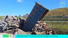 Несмотря на то, что кабина сильно искорежена, водитель почти не пострадал и от госпитализации отказался. Причину ДТП устанавливают.