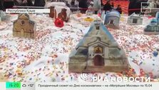 В Крыму представили гигантский пасхальный кулич. Диаметр угощения составляет 3,5 метра, а вес достигает 600 килограммов.
