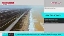 Шторм сделал берега Крыма золотыми. Высокие волны подняли со дна песок, вода приобрела золотистый оттенок.