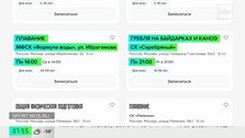 В спорткомплексе "Формула воды" в 14:00 состоится тренировка по плаванию для развития мышечной массы и укрепления опорно-двигательного аппарата. В спорткомплексе "Серебряный" в 21:00 начнется занятие по гребле на байдарках и каноэ.