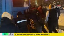 Снегопад осложнил дорожную обстановку в Москве. Пассажирам пришлось вручную выталкивать автобус, который застрял в сугробе на Первомайской улице в столичном районе Измайлово.