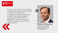 "К концу этого года 80% базы знаний чат-бота подключим к искусственному интеллекту в соответствии со Стратегией развития транспорта до 2030 года, которую утвердил Сергей Собянин. Внедрение нейросетей позволяет перевести сервис на качественно новый уровень. Александра стала первым в стране транспортным помощником на базе 2 больших языковых моделей. С момента запуска нейросети помогли обработать свыше 650 тысяч вопросов пользователей", – рассказал заммэра по вопросам транспорта и промышленности Максим Ликсутов.