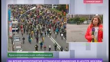В столице проходит масштабный велопарад. Колонна московских велосипедистов движется по московским улицам и набережным. За ними наблюдают корреспонденты телеканала "Москва 24".