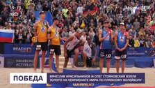 Вячеслав Красильников и Олег Стояновский стали лучшими на чемпионате мира по пляжному волейболу. Российская пара впервые завоевала золото. Соревнования завершились в Гамбурге. Россияне в финале обыграли хозяев турнира Клеменса Виклера и Юлиуса Толе.