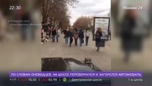 Крупная авария произошла в Рязанской области. На видео видно, как вспыхнул один из автомобилей. Водитель едва успел выбраться из салона, как иномарку охватил огонь. Ее пытались потушить очевидцы и даже другие пострадавшие, но из-за утечки топлива пламя распространилось слишком быстро. Подробнее – в сюжете телеканала Москва 24.