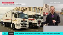 Завершается парад городской техники. По центру проехали почти 700 машин. Садовое кольцо все еще перекрыто.
