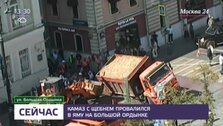 ТранспортПровалившийся в яму в центре Москвы грузовик повредил коммуникации
