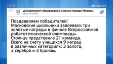 Московские школьники завоевали три золота в финале Всероссийской олимпиады роботов. Победителей в своем Twitter поздравил Сергей Собянин.