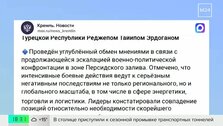 Лидеры государств обсудили рост военно-политической конфронтации в зоне Персидского залива, а также отметили, что бои на Ближнем Востоке ведут к глобальным последствиям. И Путин, и Эрдоган выступают за скорейшее прекращение огня.