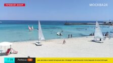 Веб-камера показывает один из пляжей Палермо, столицы Сицилии. Люди купаются, катаются на катамаранах, досках и загорают.