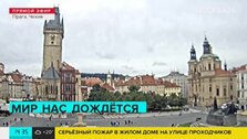 Камера показывает Прагу, а именно Староместскую площадь в историческом центре города. На переднем плане стоит мемориал Яна Гуса, реформатора 14 века.