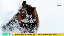 Медведи Нуга и Пряник, которые проживают в парке львов "Земля прайда", были замечены за процессом откапывания снега.