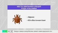 С приходом тепла в Москве начался сезон клещей. В этом году по России распространяются клещи-мутанты из Африки и Азии рода Хиаломма, которых прозвали "клещами-зебрами" за желтые полоски на лапках. Они крупнее обычных, преследуют жертву, и привычные спреи на них не действуют.